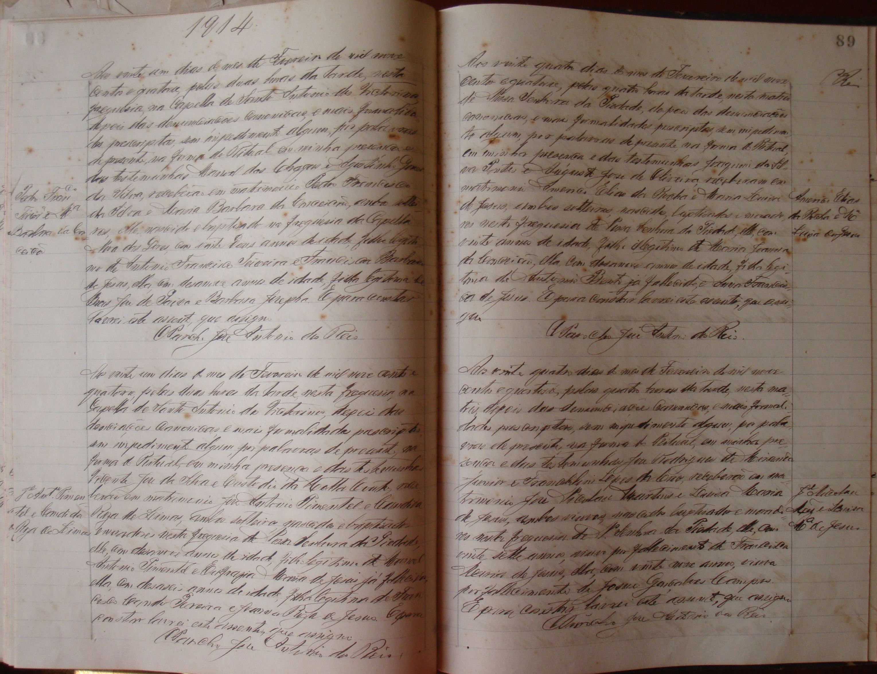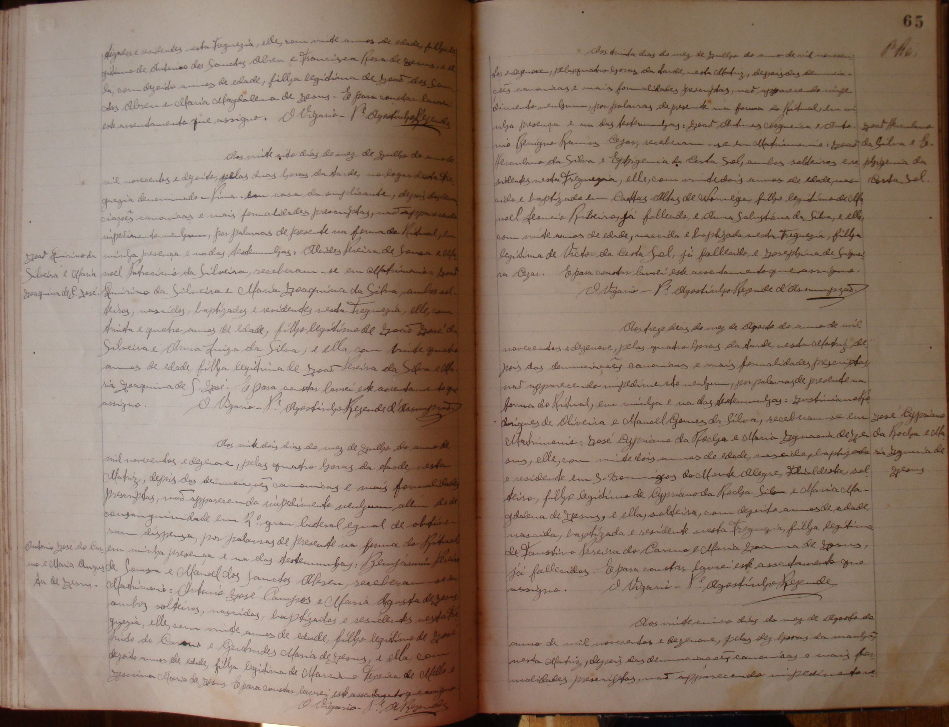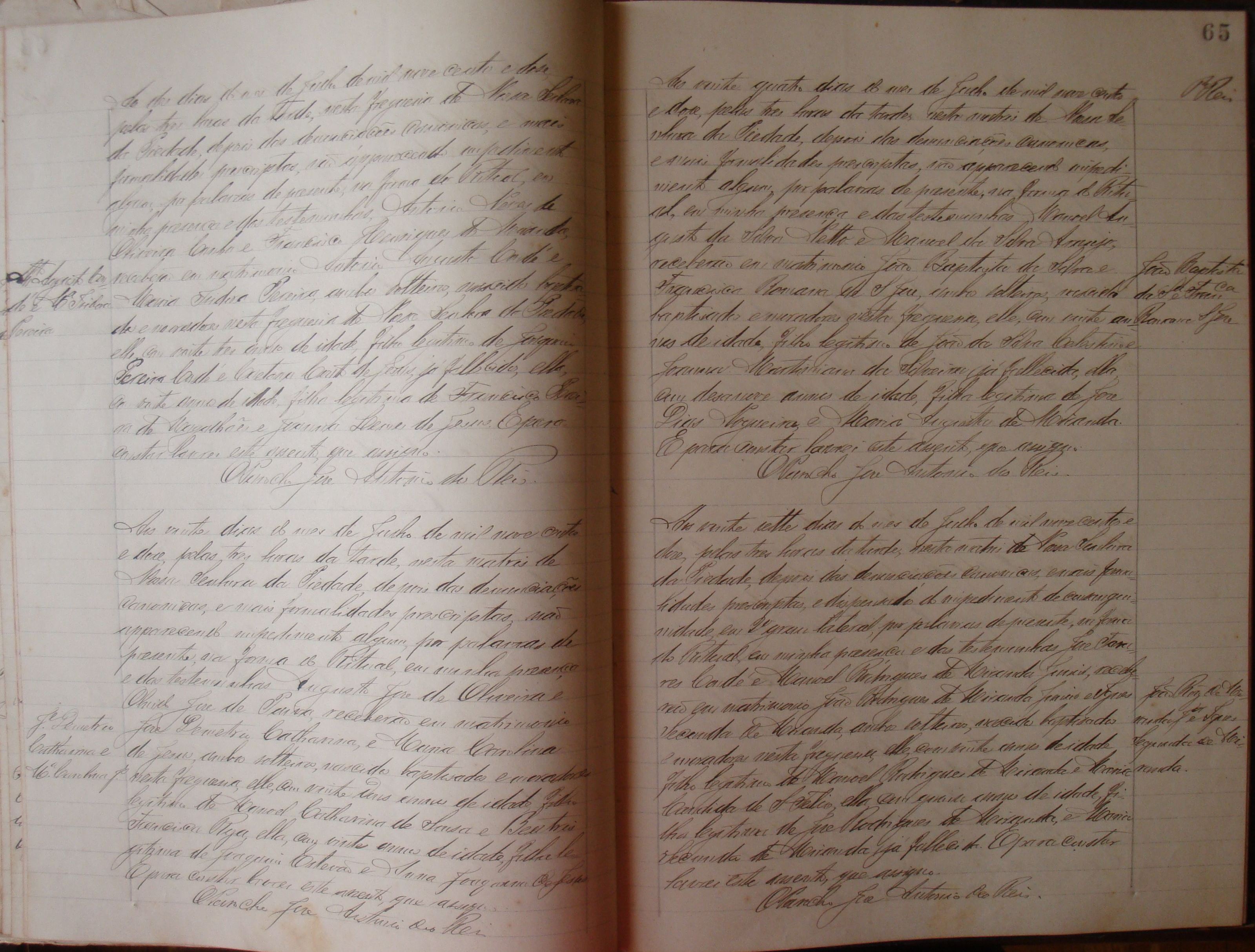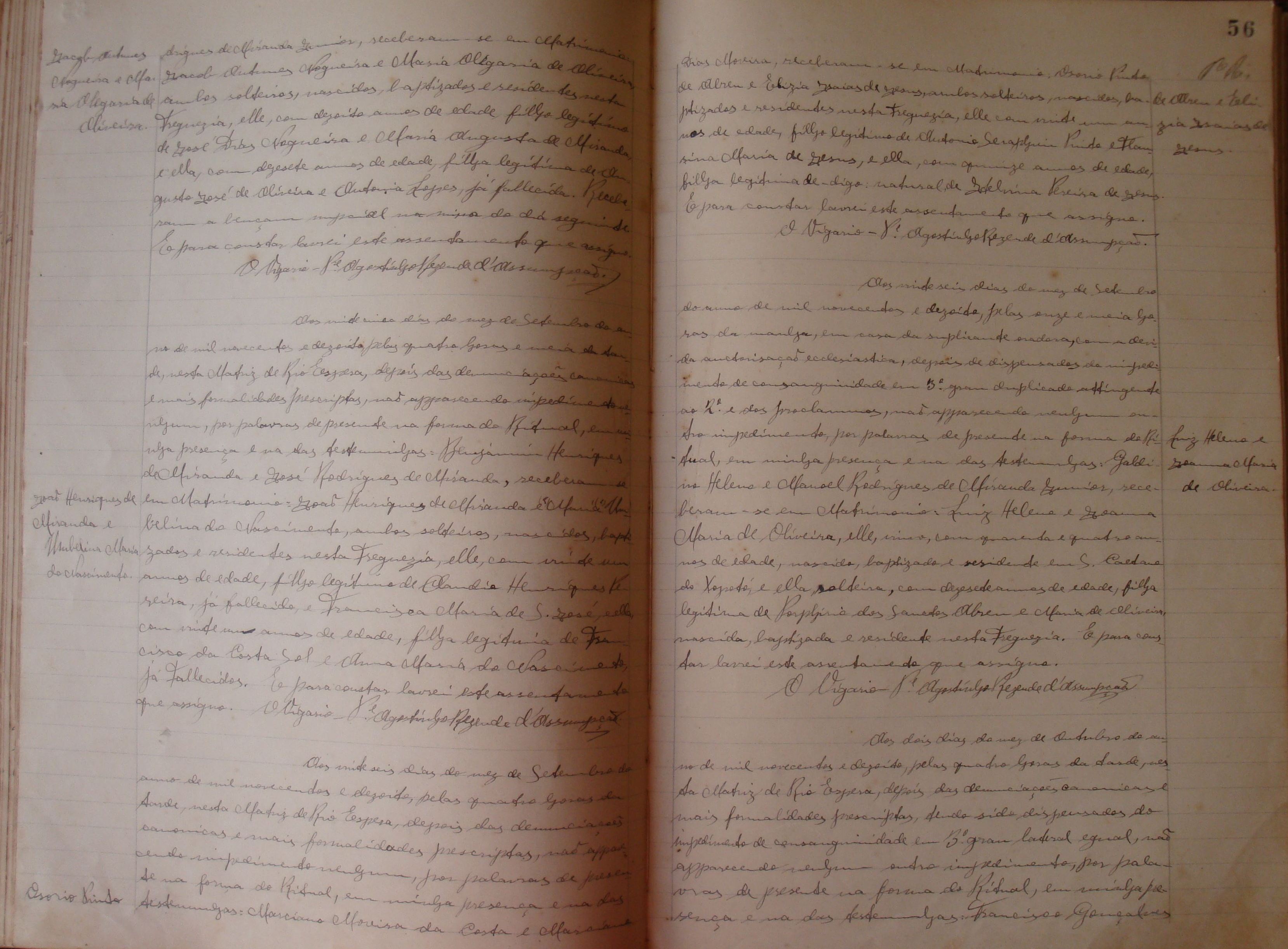 • Matrimônio: setembro, outubro, novembro, dezembro de 1882 – Itaverava